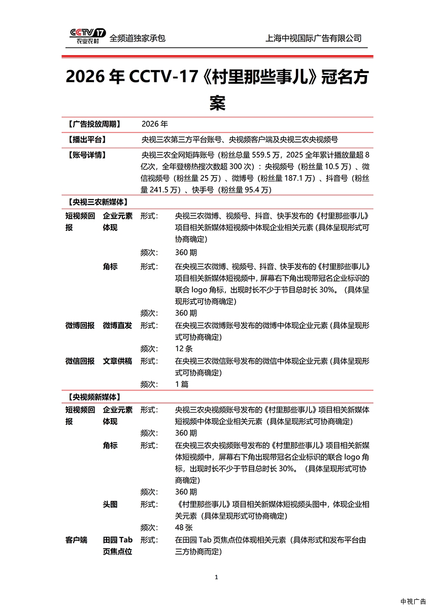2026年CCTV-17《村里那些事儿》项目系列合作方案