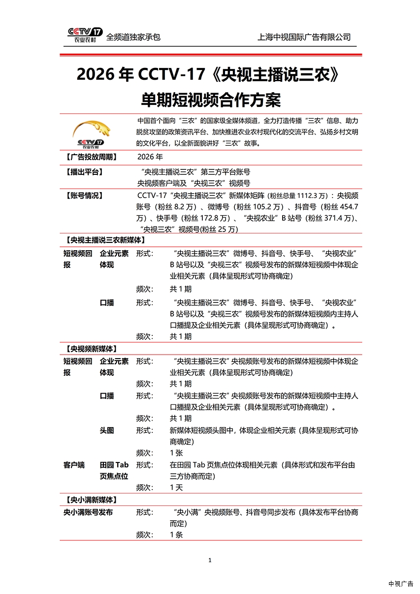 2026年CCTV-17《主播说三农》项目合作通案